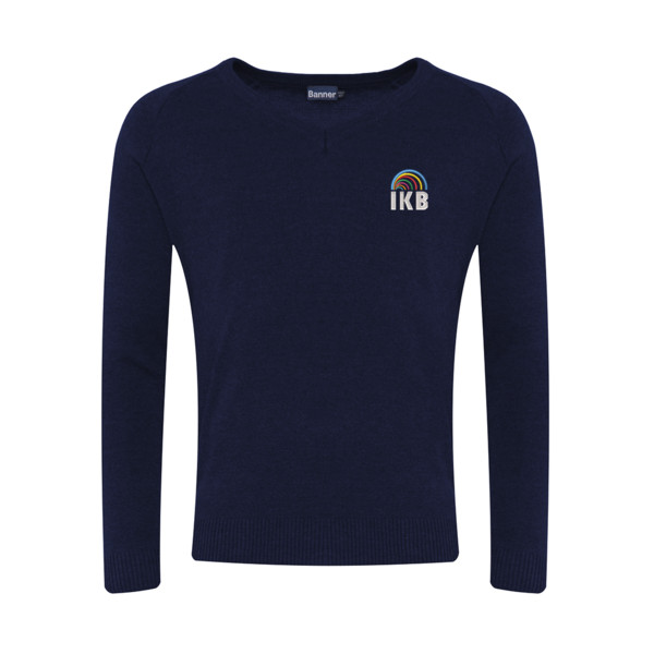 The IKB School V Neck Jumper is warm, soft and hard wearing. The left breast is embroidered with the IKB School Logo. Available in Ages 3 – 14 years. Produced from 50% Cotton, 50% Acrylic yarn
